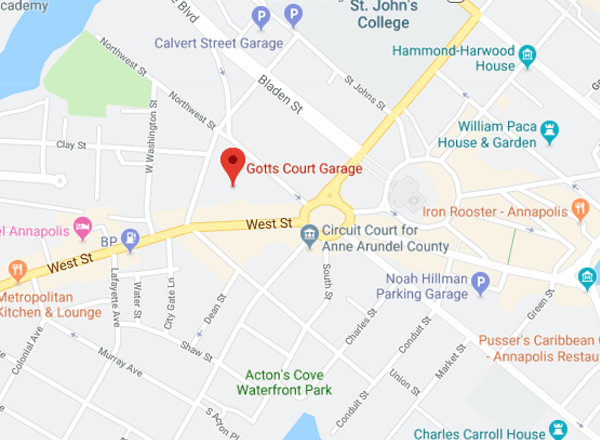 Gott’s Court Garage at 25 Northwest Street, Annapolis MD. Our self-parking garage is open 24 hours a day, seven days a week.